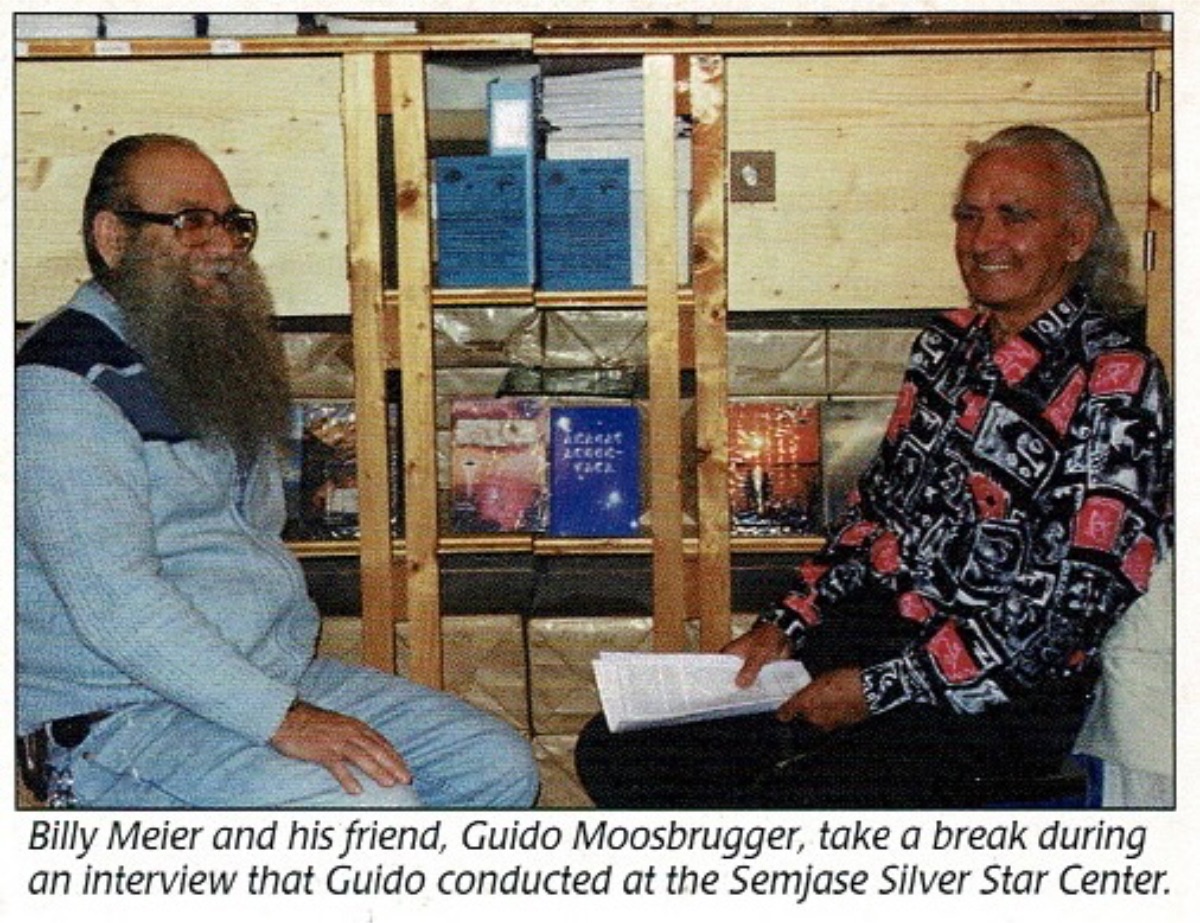 Guido Moosbrugger during a Q&A session with Billy Meier in Semjase Silver Star Center, Switzerland 1995. The series of questions Guido asked which Billy Meier answered was turned into a 68 page booklet in A5 format called “An Interview With A UFO Contactee” (1995). It is printed both in the German original and the English language translation side by side. A sample of these Q&A's can be found here, here and here.
