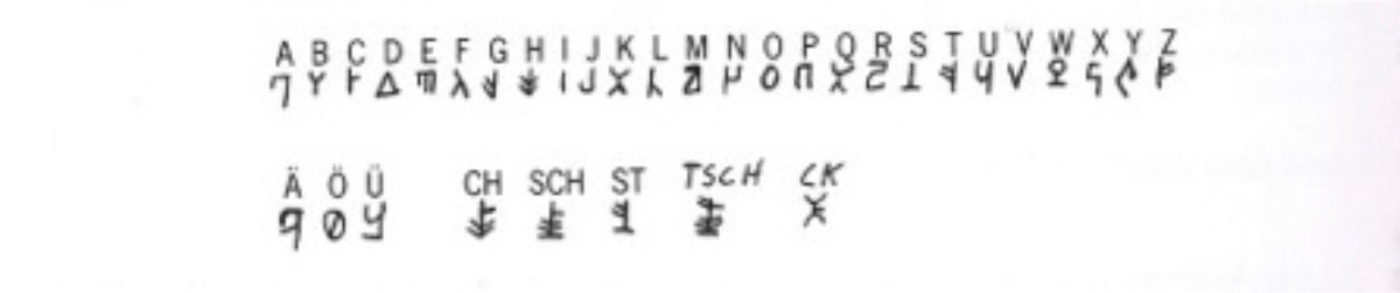 20. It might help you if you first write down the German alphabet and then write the characters of our present-day alphabet above or below it.